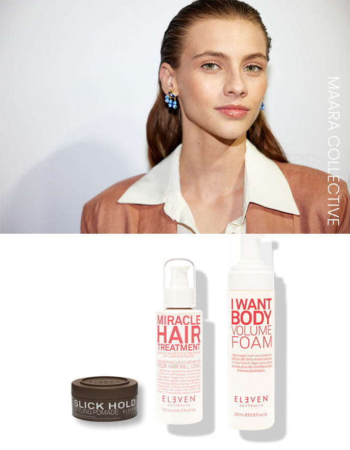 MIRACLE HAIR TREATMENT was our go-to for this show as was our I WANT BODY VOLUME FOAM and SLICK HOLD STYLING POMADE." JS
