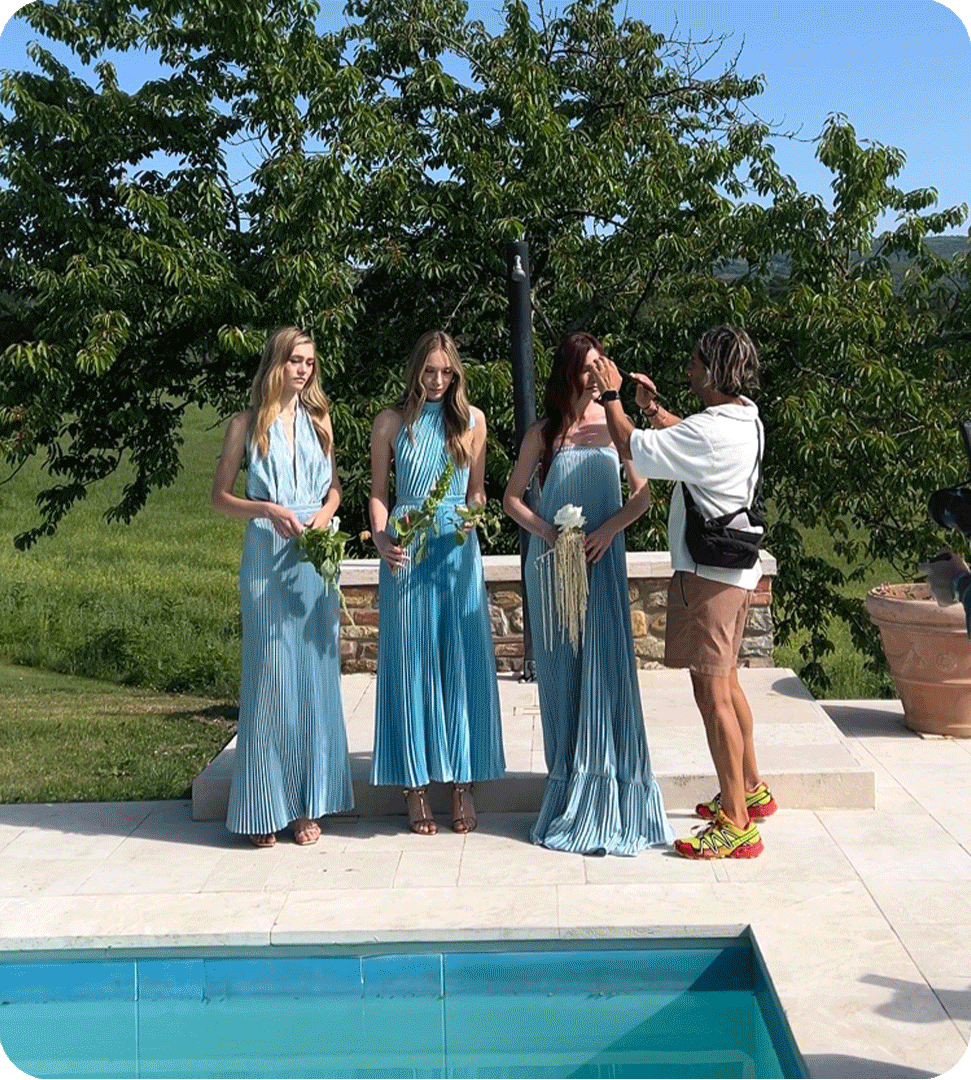 ELEVEN Australia Hair Director, Joey Scandizzo, assisted by Melvin Royce Lane, worked to create glamourous hair looks under the Tuscan sun.