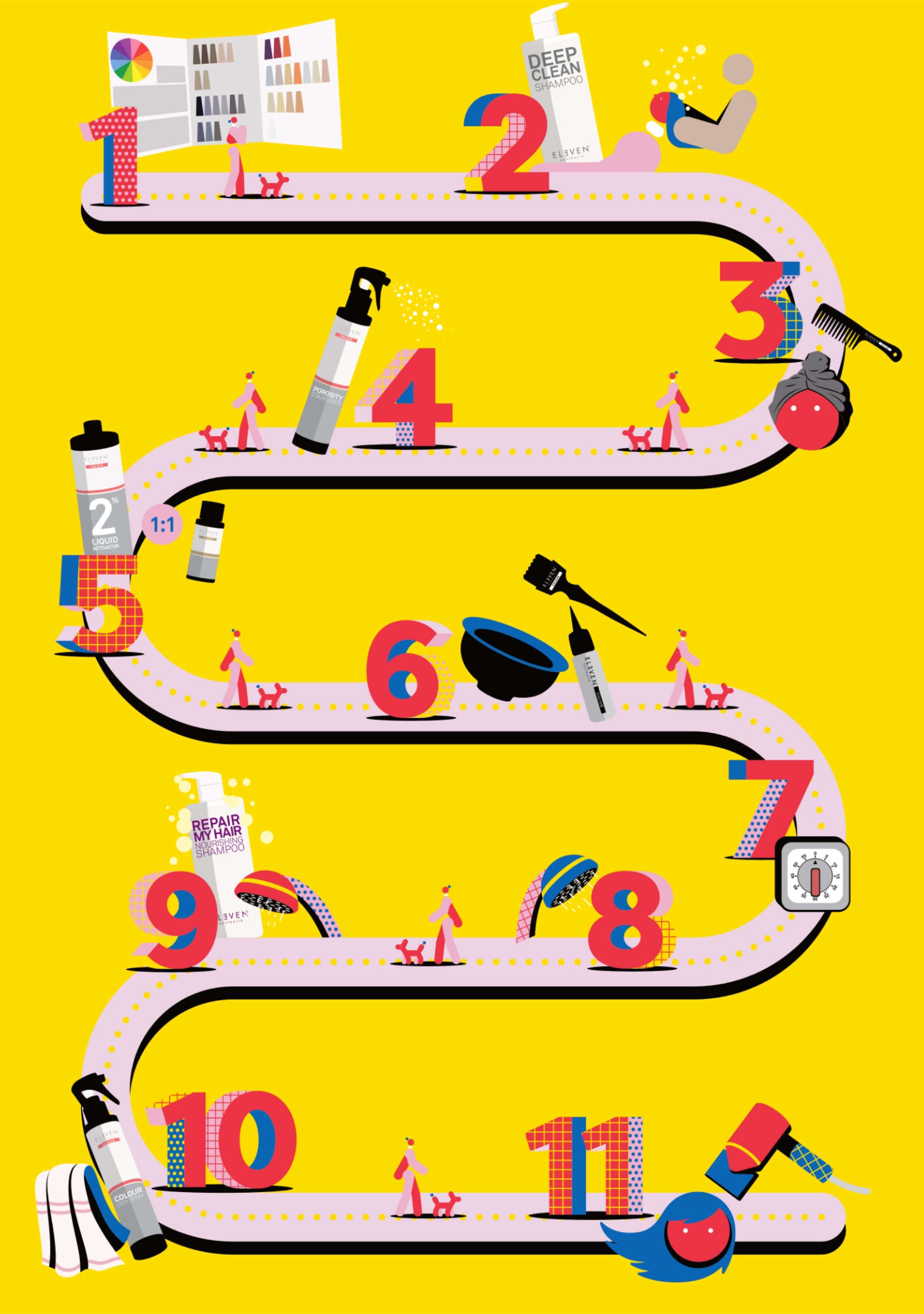 Wash hair with ELEVEN Australia REPAIR MY HAIR NOURISHING SHAMPOO. Rinse thoroughly until the water runs clear, leaving no colour residue on the scalp. Do not use conditioner.